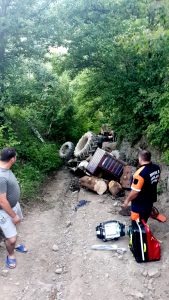 Tractorul era condus pe un drum forestier, în localitatea Telec, de către un bărbat de 52 de ani.