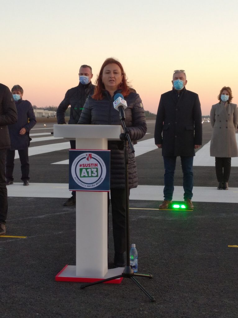 „Ne aflăm la finalul unui amplu proces de modernizare din existența aeroportului din Bacău. Vorbim de calea de acces către aeroport, un drum, acum câțiva ani, care reprezenta un real pericol pentru cei care aveau nevoie urgentă de transport aerian. Astăzi, putem discuta despre o adevărată stradă, concepută la standarde de calitate ridicate, în patru benzi, care înseamnă viață, înseamnă salvare, realizată cu sprijinul financiar exclusiv al Consiliului Județean”, a declarat Oana Chelaru, administratorul Aeroportului.