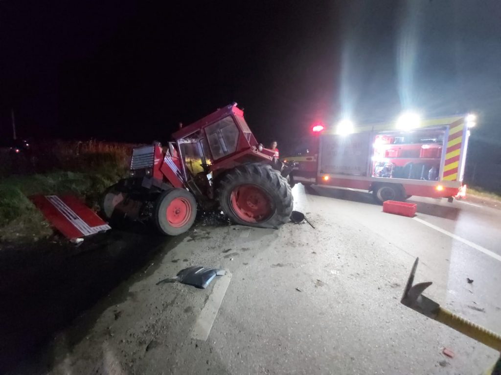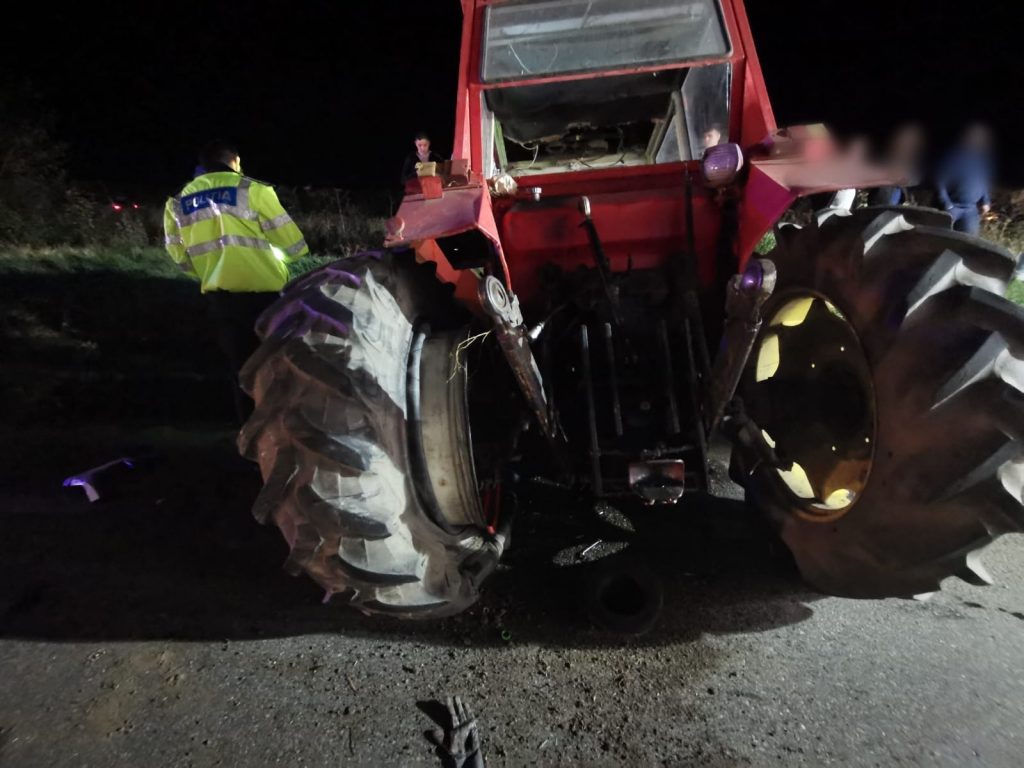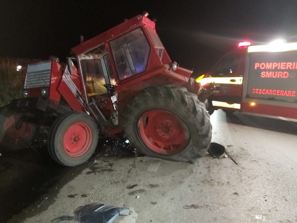 Accident produs între un tractor și un autoturism, în județul Suceava, cu cinci persoane implicate (Foto-video)
