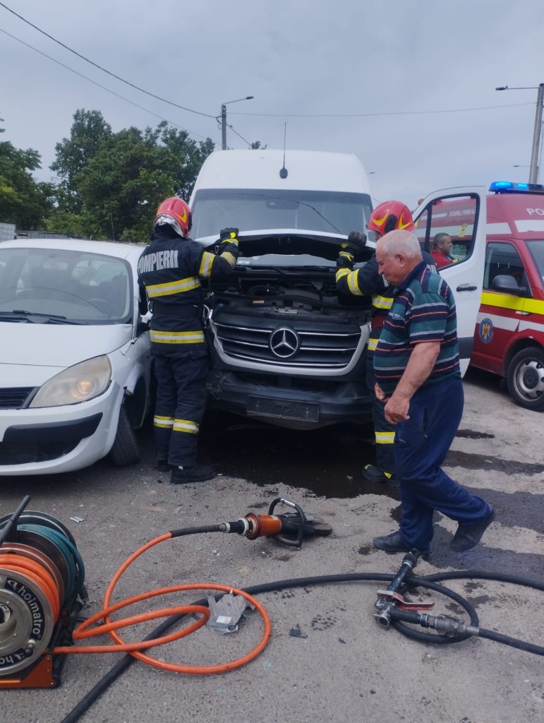 La sosirea echipajelor de intervenție au fost găsite cele două autovehicule avariate, din autoturism fiind sesizate scurgeri de lichide combustibile.