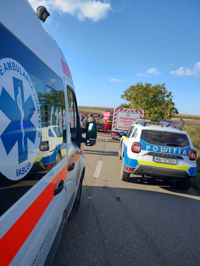 Detașamentul de pompieri Bârlad intervine cu trei autospeciale și echipaje specializate, la un accident rutier produs pe 244 H, în localitatea Viișoara.