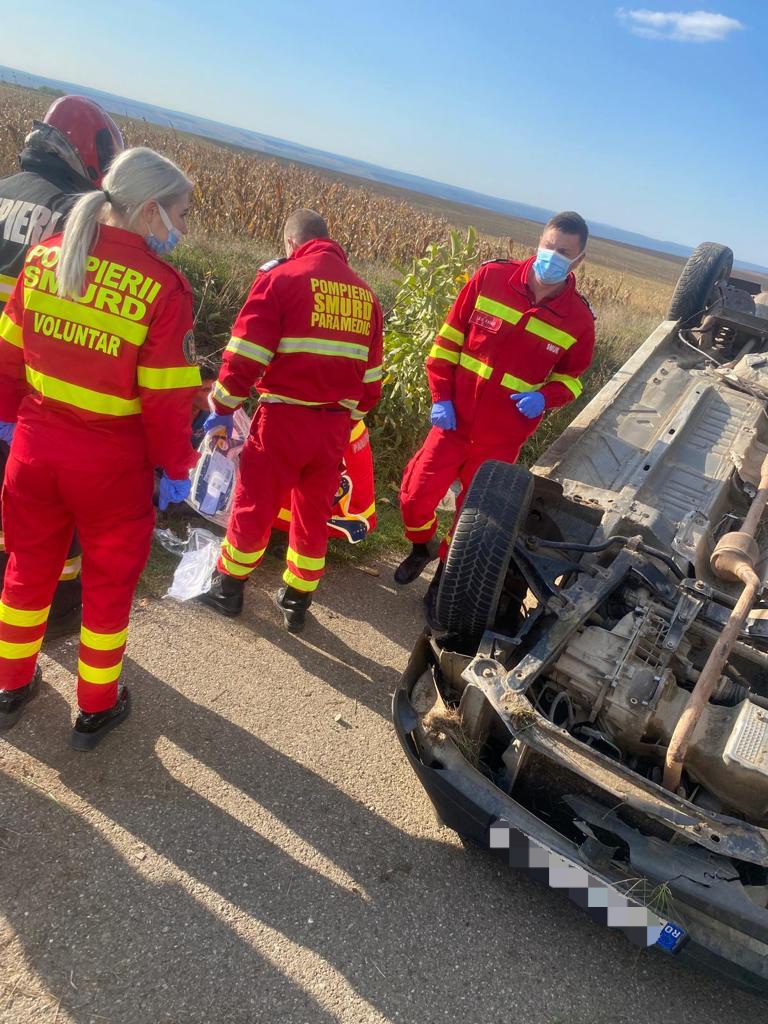 Accident rutier la Viișoara, județul Vaslui, o mașină s-a răsturnat (Foto-Video)
