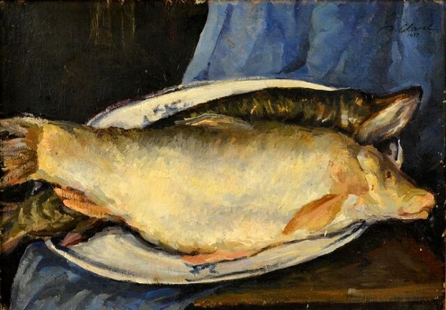 Alexandru Clavel, Natură statică cu crapi, pictură, ulei pe pânză