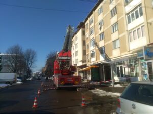 Luni, după amiază, ca urmare a unui apel la 112, pompierii din cadrul Detașamentului Piatra Neamț au intervenit cu o autospecială pentru intervenție și salvare de la înălțime pentru îndepărtarea unor țurțuri ce atârnau la acoperișul unui bloc din strada Progresului din municipiul Piatra-Neamț. Temperaturile pozitive de timpul zilei și cele negative de pe timpul nopții au creat un nou pericol: țurțurii care s-au format pe marginea acoperișurilor. Bucățile de gheață se pot desprinde oricând și pot pune în pericol viața oamenilor sau avaria mașinile parcate în zonă.