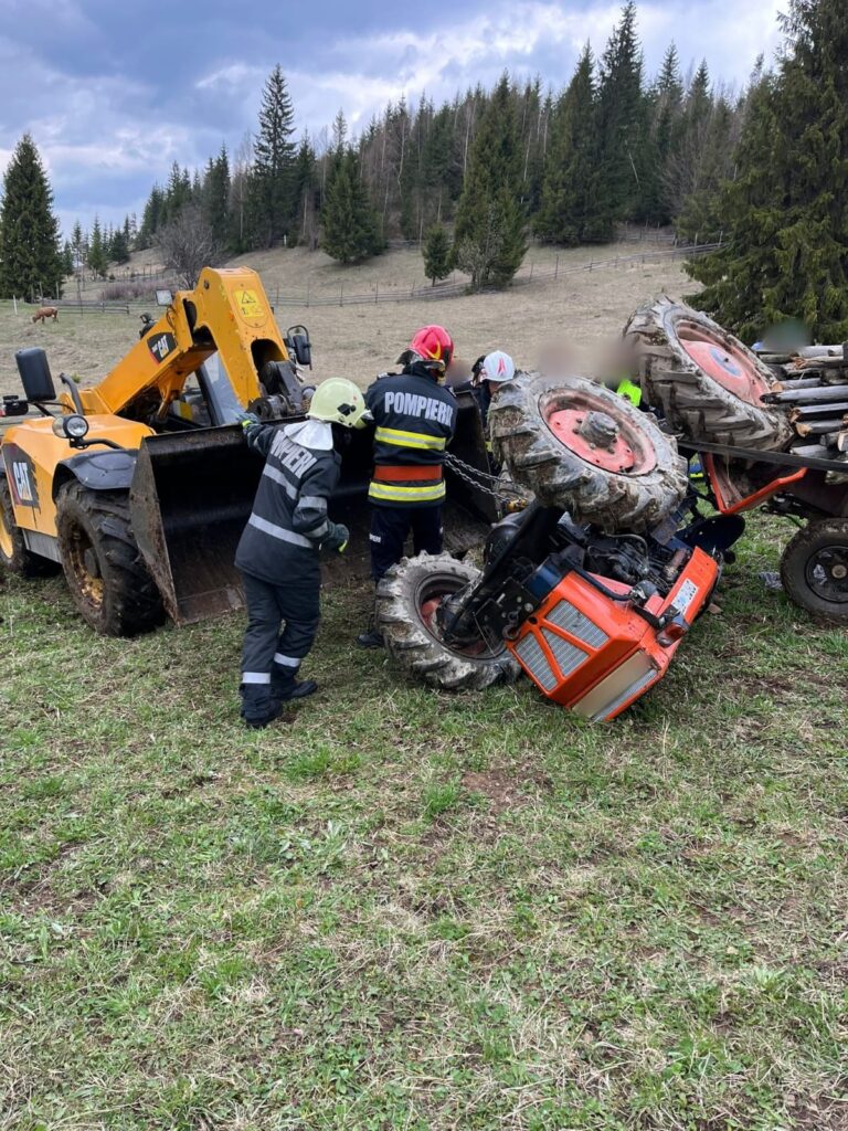 Pompierii militari ai Detașamentului Vatra Dornei au fost solicitați intervină în această după amiază pe raza localității Poiana Negri, pentru extragerea unui barbat (42 de ani) prins sub un tractor.
