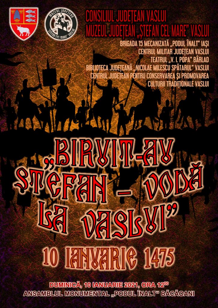 Consiliul Județean Vaslui și Muzeul Județean „Ştefan cel Mare” Vaslui – în colaborare cu Brigada 15 Mecanizată „Podul Înalt” Iași, Centrul Militar Județean Vaslui, Teatrul „V. I. Popa” Bârlad, Biblioteca Județeană „Nicolae Milescu Spătarul” Vaslui și Centrul Județean pentru Conservarea și Promovarea Culturii Tradiționale Vaslui – organizează, ca de fiecare dată, o amplă manifestare culturală, intitulată „BIRUIT-AU ȘTEFAN VODĂ LA VASLUI. 10 IANUARIE 1475”.