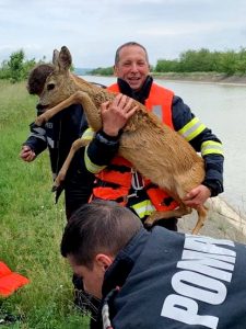 Misiune inedită a pompierilor militari, care marți, 15 iunie, au salvat o căprioară care era cât pe ce să-și găsească sfârșitul în apele râului Bistrița. La orele amiezii, pompierii au fost sesizati cu privire la faptul că o căprioară a căzut în canalul Bistrița, pe raza comunei Zănești. La locul solicitării s-a deplasat un echipaj de pompieri cu o autospecială complexă pentru intervenție și o barcă din dotarea Detașamentului Piatra-Neamț precum și voluntari din cadrul SVSU Zănești.