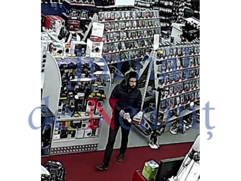 După vizualizarea imaginilor surprinse de camerele de supraveghere, poliţiştii au constatat că cel bănuit de comiterea faptei este în vârstă de aproximativ 20-24 de ani, înălțimea de 160 – 165 cm, constituție atletică, îmbrăcat cu geacă și pantaloni de culoare închisă. Acesta, profitând de neatenția personalului de serviciu, ar fi desigilat cutia ce conținea o pereche de căști, pe care le-ar fi sustras, după care a părăsit incinta societății.