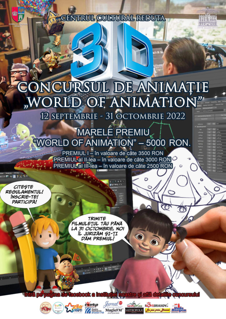 Centrul Cultural „Reduta”, prin Serviciul Programe Culturale, organizează, în perioada 12 septembrie – 31 octombrie 2022, prima ediție a Concursului de animație ,,WORLD OF ANIMATION”