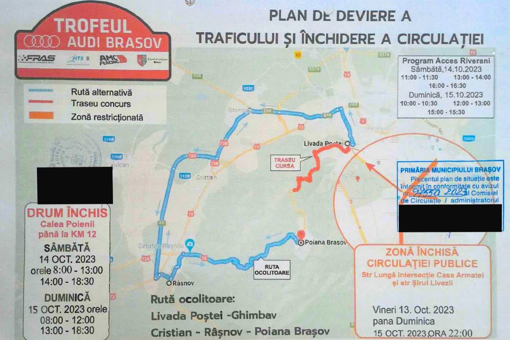 Circulația pe drumul spre Poiana Brașov va fi închisă sâmbătă și duminică, 14 – 15 octombrie, pentru desfășurarea ”Trofeului Audi Brașov”, ultima etapă în cadrul Campionatului Național de Viteză în Coastă, anunță primăria Brașov.
