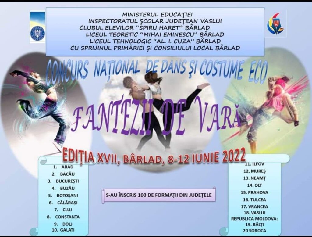 În perioada 8 – 12 iunie, la Bârlad se desfășoară cea de a XVII-a ediție a Concursului național de dans și costume eco ”Fantezii de vară”.