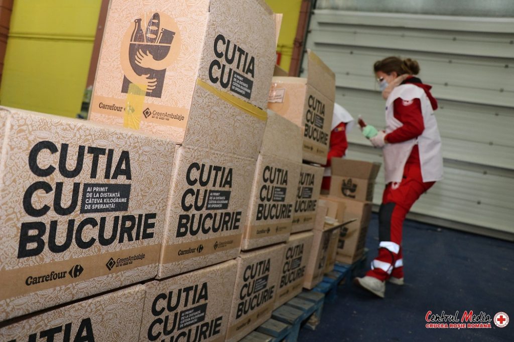 „Cutia cu Bucurie” de la Crucea Roșie și un supermarket pentru 50 de familii nevoiașe