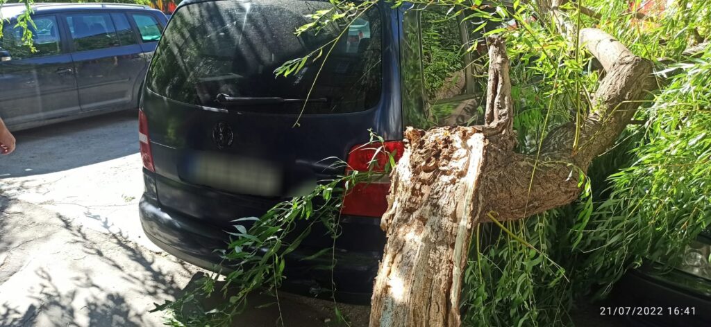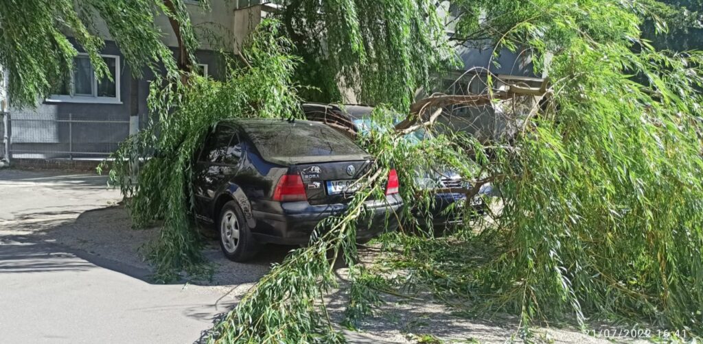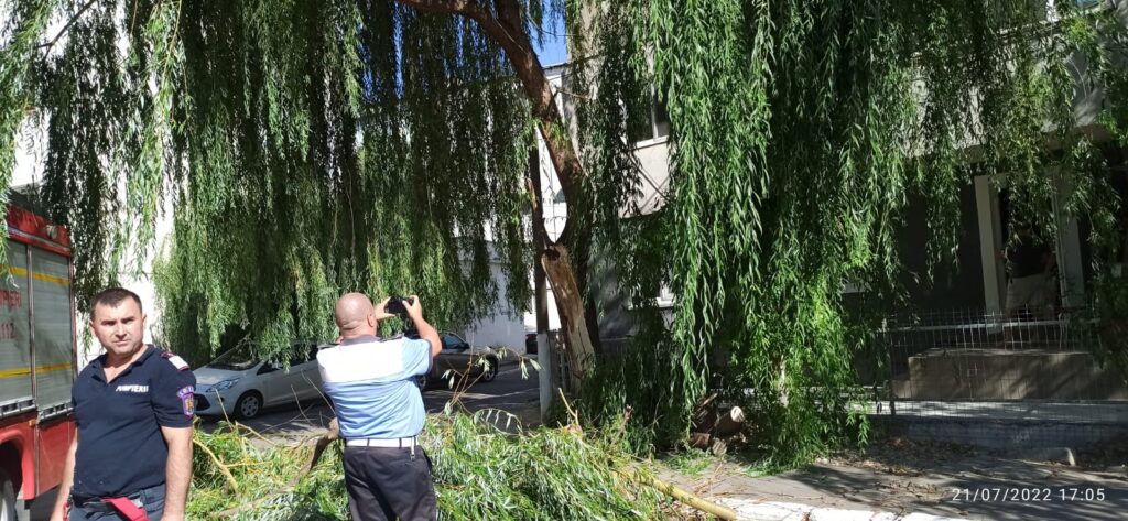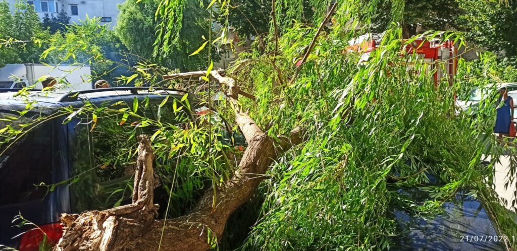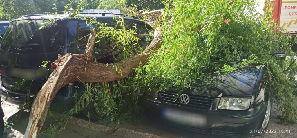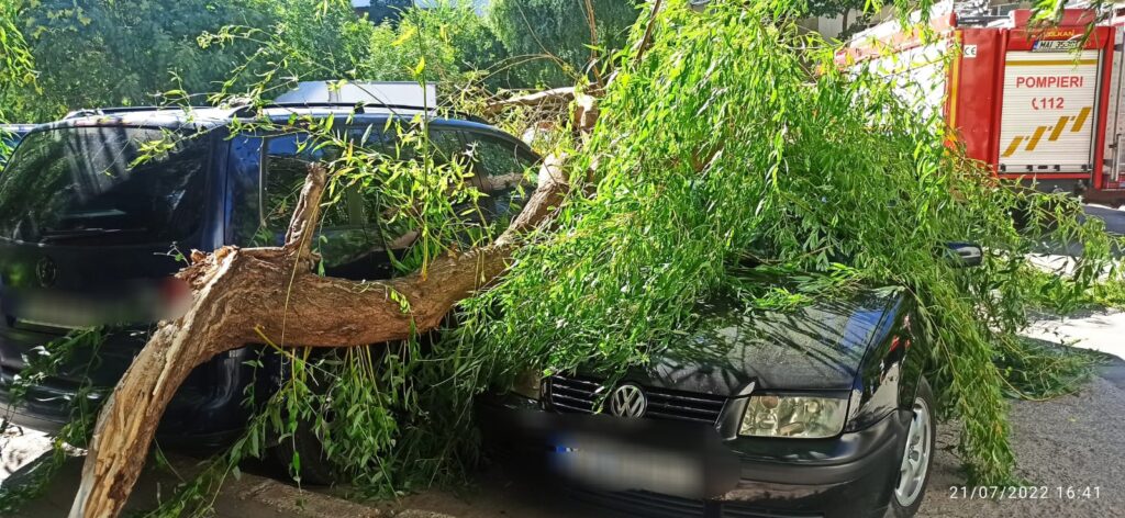 Din primele informații, este posibil ca arborele să fi avariat două autoturisme staționate în zonă.