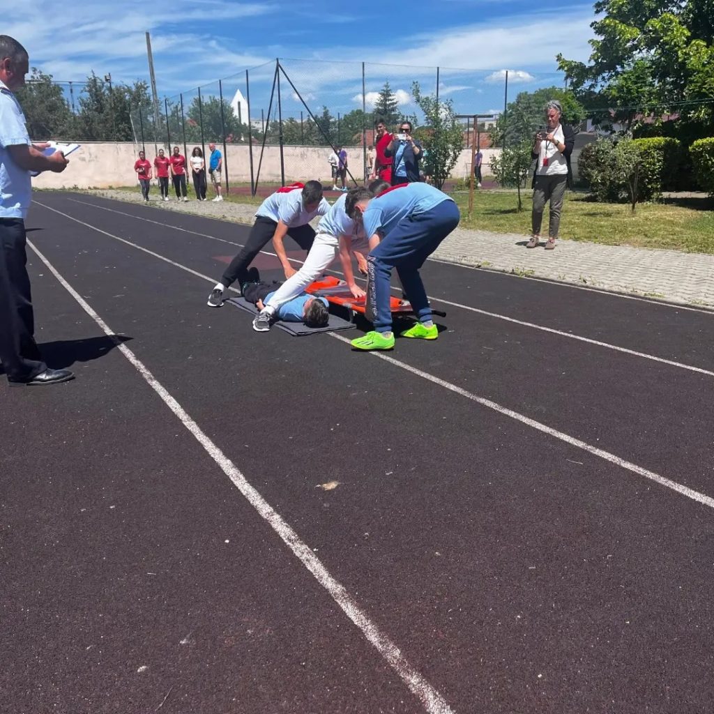 După parcurgerea probei teoretice şi a celor două probe practice, care au constat în “Transportul asistat al unui accidentat, aşezat pe targă, pe distanţa de 50 metri” şi în “Deplasarea cu masca pe figură într-un raion cu obstacole, contaminat”, în fruntea clasamentului general, la categoria liceu (15-18 ani), s-a situat echipa Colegiului Naţional “Octavian Goga” Miercurea Ciuc, coordonată de domnul profesor Dincă Liviu-Csaba.
