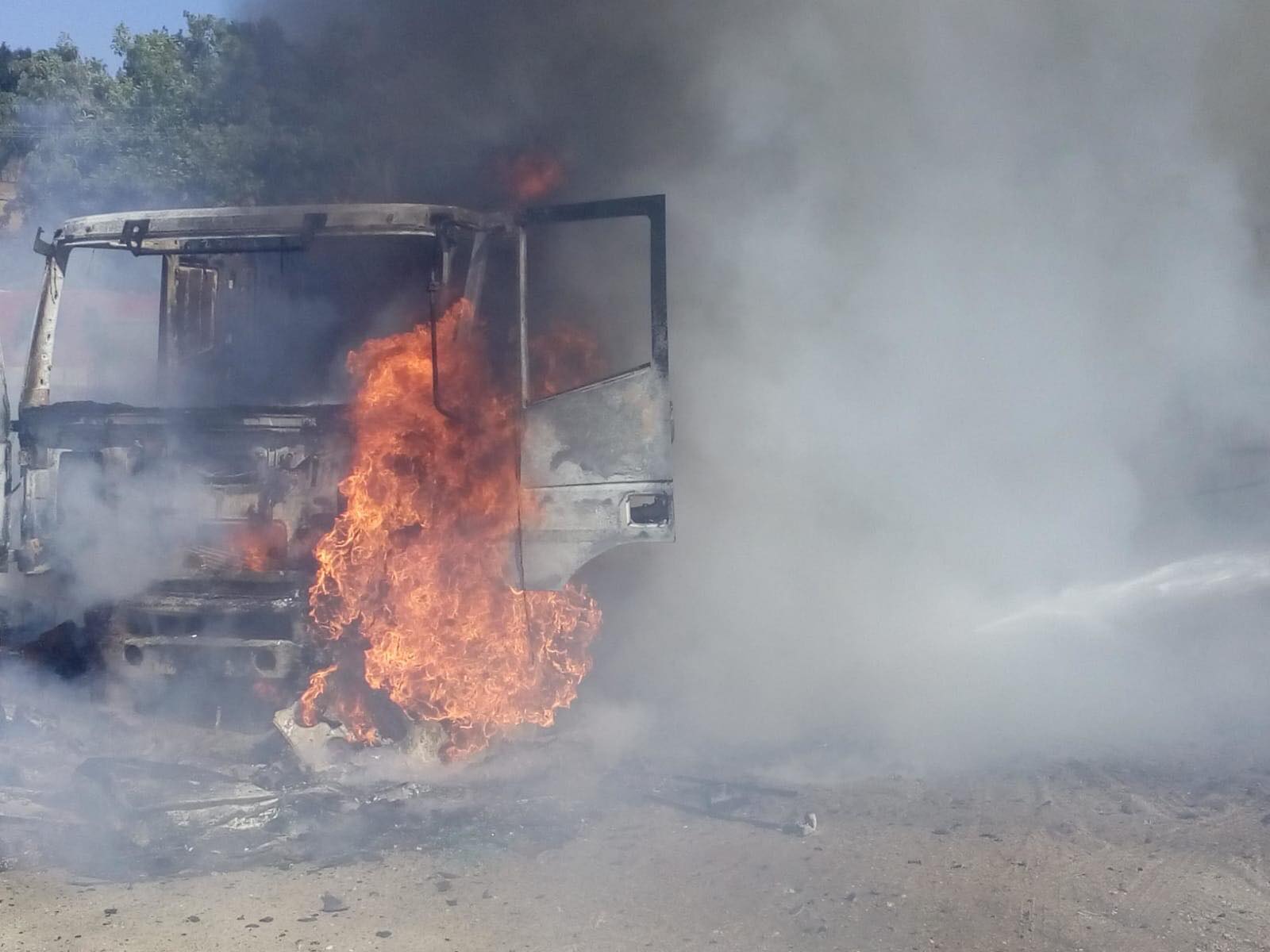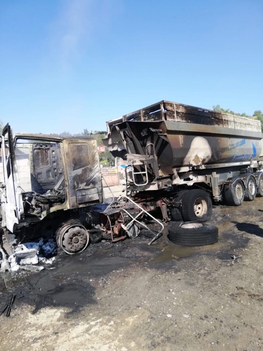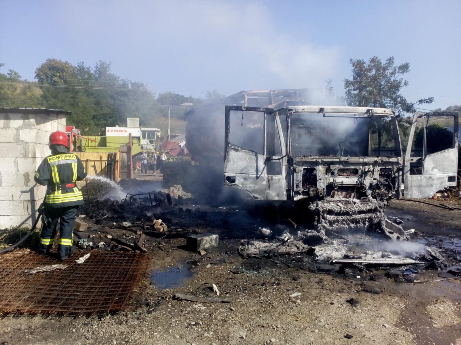 La sosirea echipajului de intervenție, incendiul se manifesta cu violență la capul tractor al autocamionului și riscă să se extindă la o locuință din apropiere.