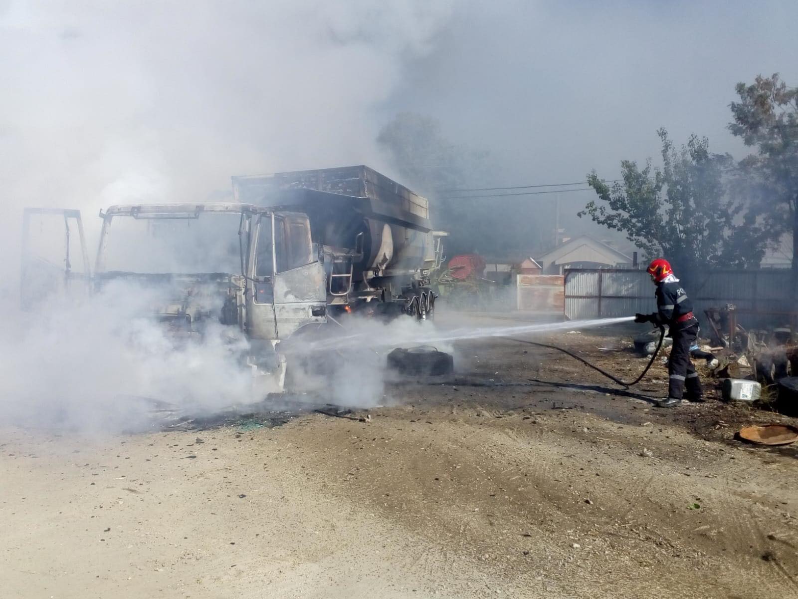 A fost distrusă remorca autocamionului și a fost salvată locuința aflată în imediata apropiere.