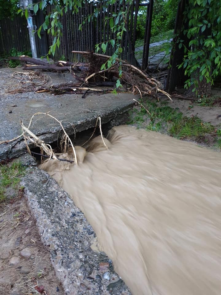 Puhoaile strânse de la ploile căzute în volum mare pe unitatea de timp au generat adevărați torenți care au măturat tot ce le-a stat în cale.