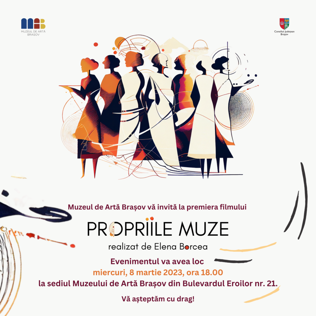 Muzeul de Artă Brașov vă invită miercuri, 8 martie 2023, la premiera filmului „Propriile muze” regizat de Elena Borcea. Evenimentul va avea loc de la ora 18.00 la sediul muzeului din Bulevardul Eroilor nr. 21.