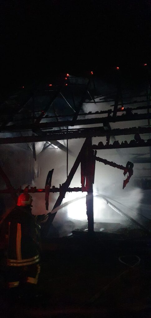 La sosirea echipajelor incendiul se manifesta generalizat la depozitul de furaje și la adăpostul de animale, corp comun.