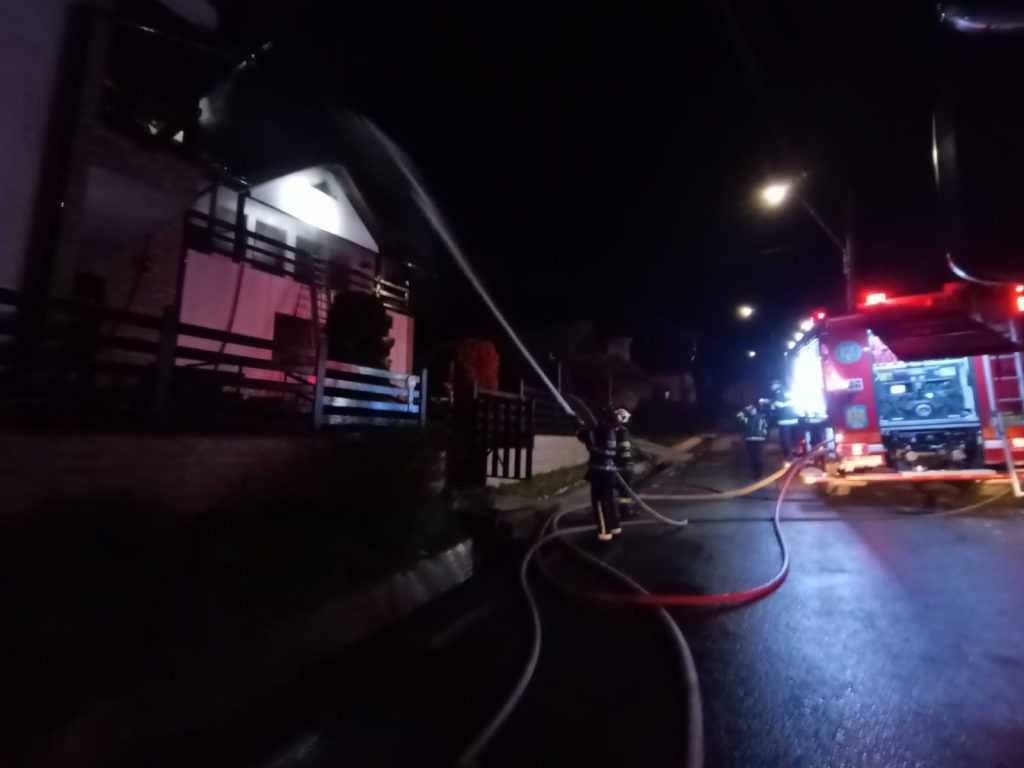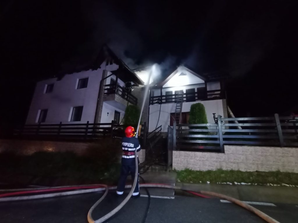 Datorită intervenţiei prompte, flăcările au fost localizate la nivelul acoperişului pensiunii.
