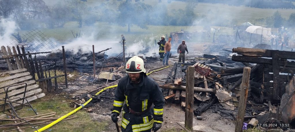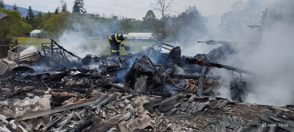 Pompierii au luptat pentru a salva imobilul! Un incendiu de proporții a izbucnit astăzi la o casă de locuit din localitatea Izvoru Mureșului, amenințând nu doar imobilul principal, ci și patru anexe din jur.