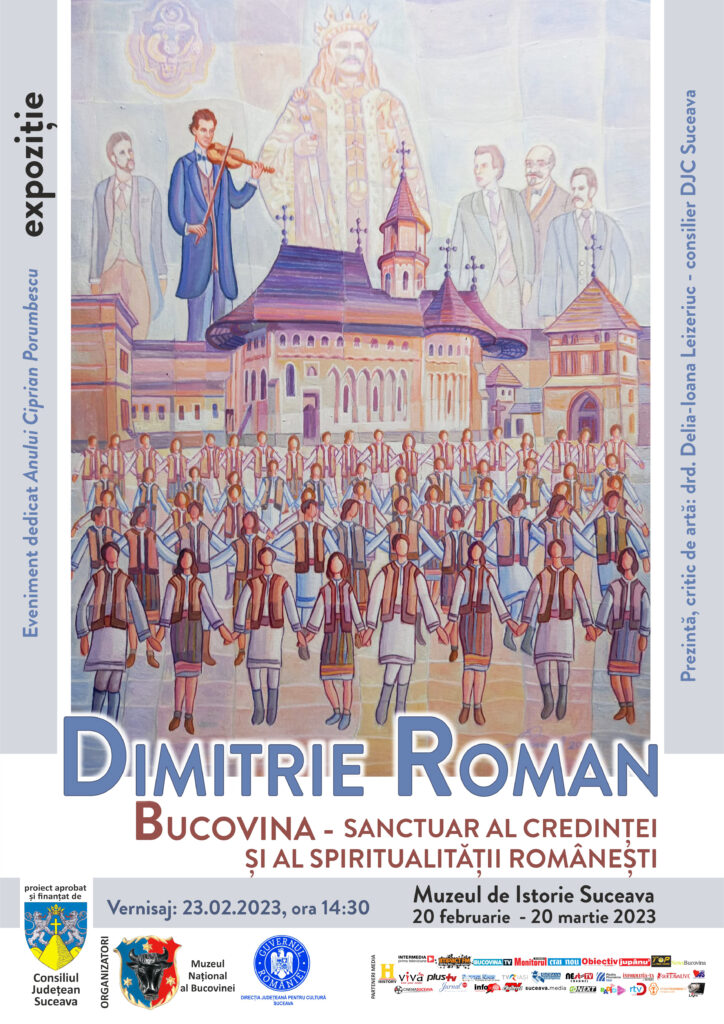 Muzeul Național al Bucovinei vă invită joi, 23 februarie 2023, la ora 14,30, la Muzeul de Istorie, în Foaier, la vernisajul expoziției de pictură Bucovina – sanctuar al credinței și al spiritualității românești, semnată de pictorul Dimitrie Roman.