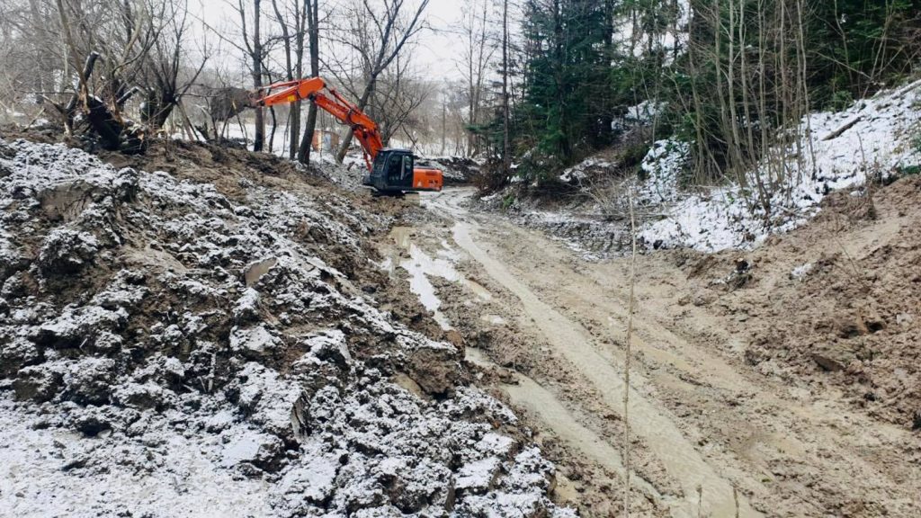 Personalul din cadrul Sistemului de Gospodărire a Apelor Suceava intervine în această perioadă pe cursul de apa Soloneț, pe raza localității Solonețul Nou, acolo unde o alunecare de teren a provocat blocarea albiei.