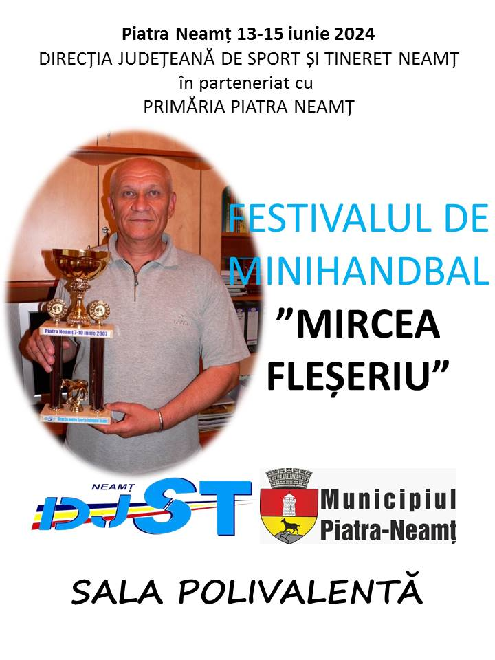 Complexul Sportiv ”Sala Polivalentă” din Piatra Neamț, aici referindu-ne la ambele incinte de la ieșirea spre Roman, va găzdui pe 14 și 15 iunie 2025, o nouă ediție a festivalului de minihandbal ”Mircea Fleșeriu”. Direcția Județeană pentru Sport și Tineret Neamț, în parteneriat cu Primăria municipiului Piatra Neamț, organizează acest eveniment de tradiție al handbalului pietrean pentru prima dată în respectiva locație.