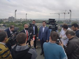 La conferința de presă susținută ba pe acoperișul spitalului, ba în noroaiele santierelor, au participat deputatul de Iași, Tudor Ciuhodaru, președintele Consiliului Județean Bacău, Sorin Brașoveanu, senatorul de Bacău Dragoș Benea, primarul municipiului Bacău, Cosmin Necula, directorul SJU, Adrian Popa, directoarea medicală a SJU-Ioana Raluca Dinu, Valentin Palea, managerul public al județului.