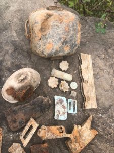 De asemenea, resturile unui rucsac militar au fost găsite în zona picioarelor; rucsacul conținea puține obiecte care au putut fi identificate, printre care trei cazmale militare și fragmentele unui bidonas de ulei pentru curățarea armei, restul obiectelor fiind distruse de vreme și de mineralizarea puternică a solului.