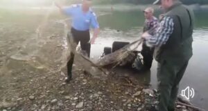 Jandarmii au luat legătura cu reprezentanții Filialei A.J.V.P.S din Comănești care, cu ajutorul unei bărci și cu sprijinul jandarmilor, au reușit să scoată plasele de pescuit de tip monofilament interzise de legislația în vigoare, în care se aflau pești de diferite dimensiuni.