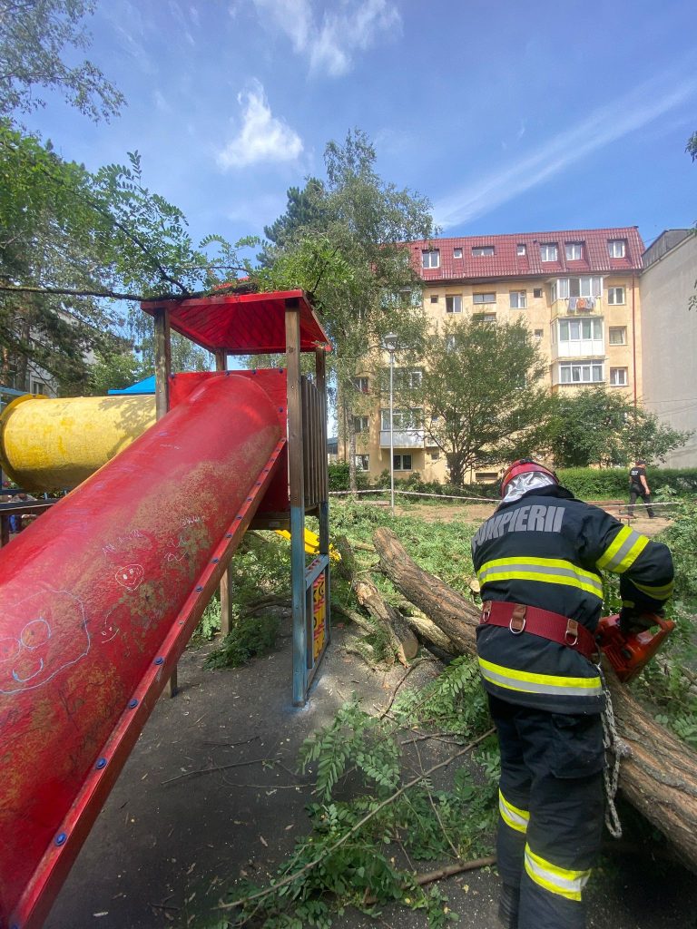 Maiorul Alin Găleată, purtător de cuvânt al Inspectoratului pentru Situații de Urgență „Bucovina” al județului Suceava, a transmis, sâmbătă, 8 iulie 2023, că „pompierii militari ai Detașamentului Suceava au intervenit cu o autospecială dotată cu echipament specific pentru îndepărtarea unui arbore căzut în zona unui spațiu de joacă din municipiul Suceava (zona Piața Mică).