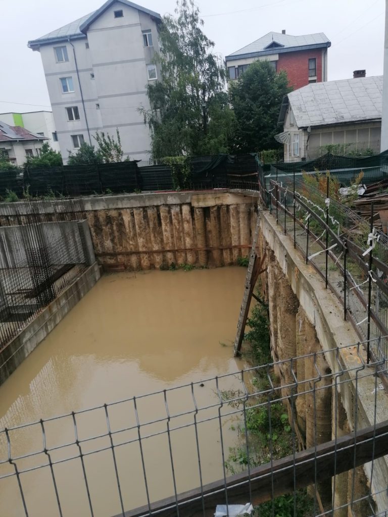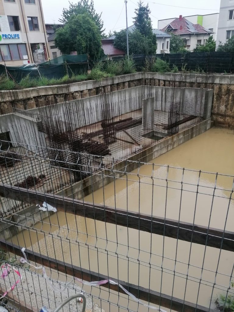 Bietul animal a căzut în fundația inundată unui bloc aflat în construcție, la o diferență de nivel de peste șase metri…