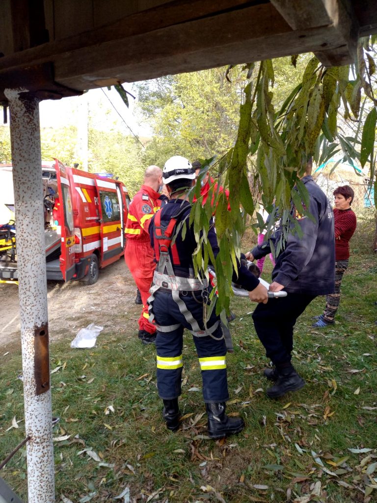 La sosirea echipajelor de intervenție, pompierii au găsit o femeie căzută intr-un puț fără apă, la o adâncime de circa 9 metri.