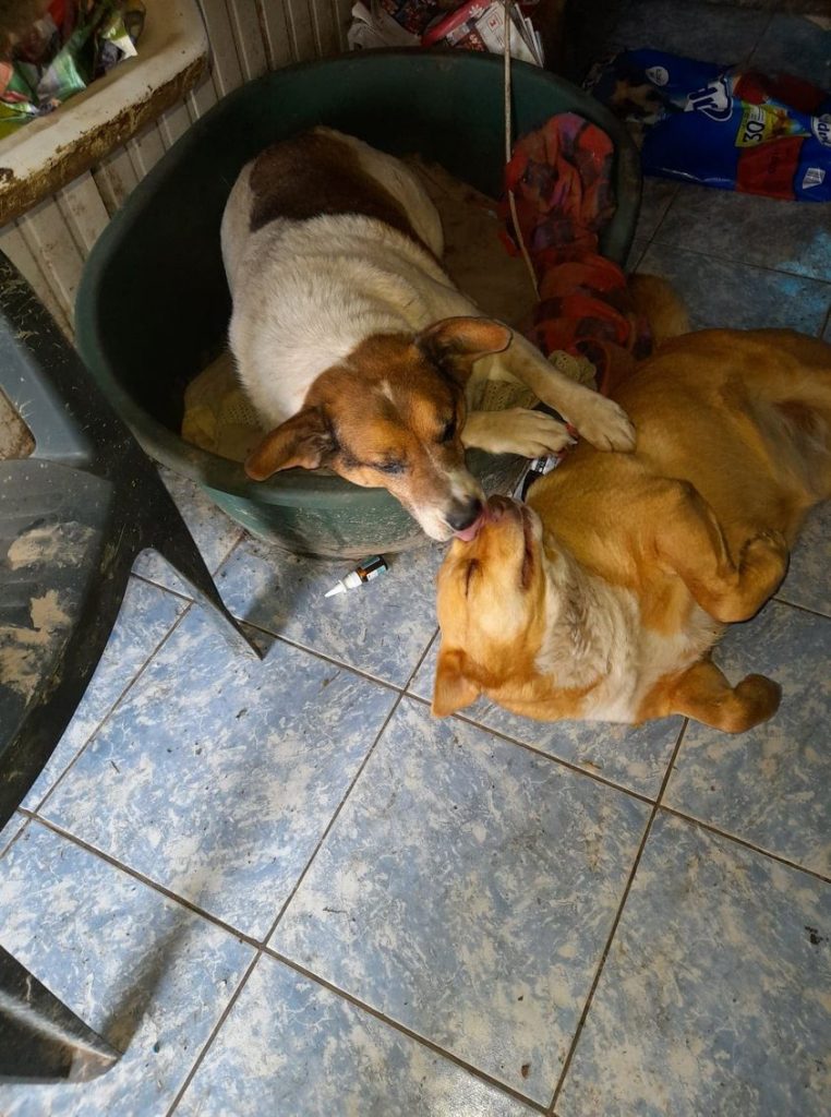 ”Am două grupuri, unul olandez, celălalt englezesc, care strâng bani! Strâng 5 euro/cuțu. Fac licitații, vând diverse obiecte mici. Obișnuiau să vină la adăpost și de 4 ori pe an, dar de anul trecut nu s-a mai putut.” Maria lasă să se înțeleagă că ajutorul, în cea mai mare parte, vine de la străini, și ne explică și cum a început colaborarea cu ei. ”Pe Facebook ne-am cunoscut! Sincer, mă mir și eu. Grupul din Marea Britanie mă ajută de 10 ani, sunt trei femei mai în vârstă. Nu m-au văzut niciodată, și din nou, mă mir… În Olanda am două prietene Debbie și Hennie care au fost aici de multe ori. Am camere de supraveghere la adăpost, mă urmaresc de acolo. Grupul din Marea Britanie mă ajută cu adopții, nu cu întreținerea cățeilor, dar îmi trimite bani pentru mâncare.
