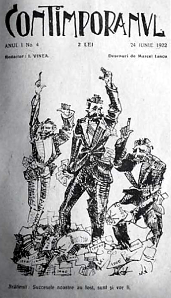 Sursa foto: https://ro.m.wikipedia.org/wiki/Fișier:1922_-_Fraţii_Brătianu,_copertă_revista_Contimporanu,_caricatură_de_Marcel_Iancu.png