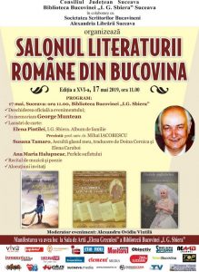 Vineri, 17 mai, cu începere de la ora 11:00, la Biblioteca Bucovinei „I.G. Sbiera” Suceava, Sala de artă „Elena Greculesi”, va avea loc ediția a XVI-a, a Salonului Literaturii Române din Bucovina.