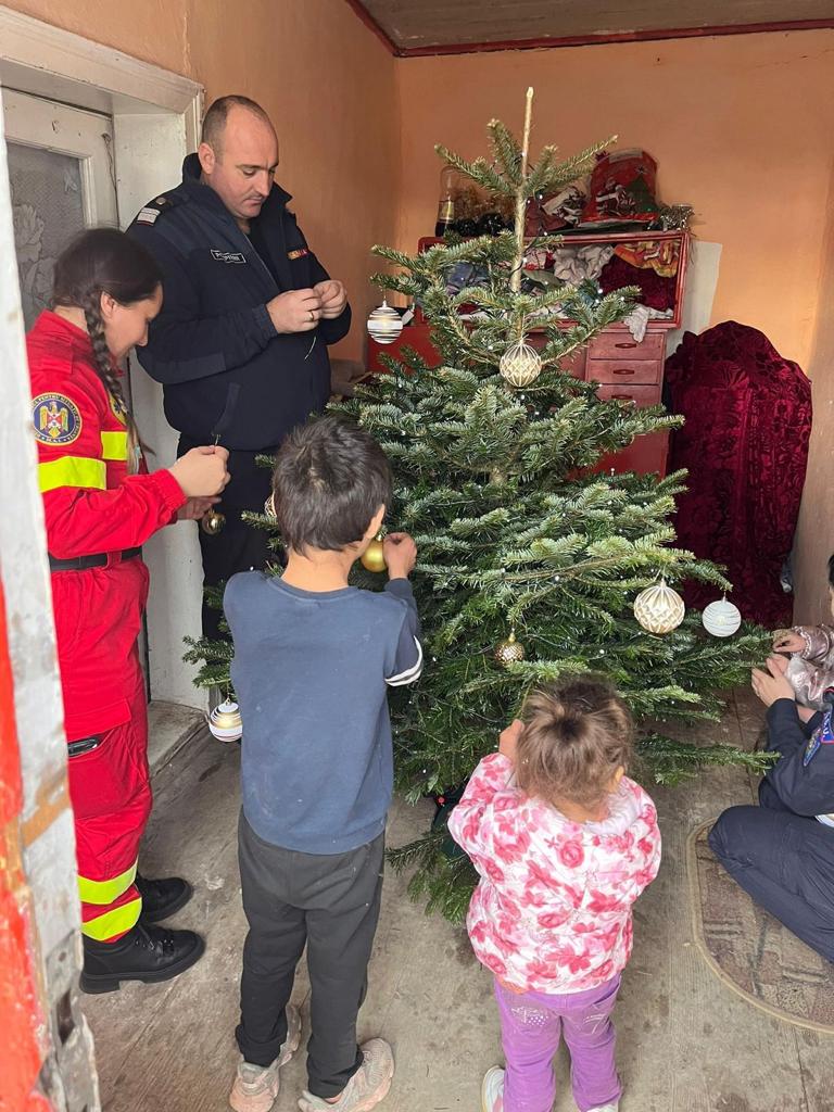 Și cum bradul este în centrul acestei sărbători, pompierii s-au asigurat că toți micuții se vor putea bucura de acest moment.