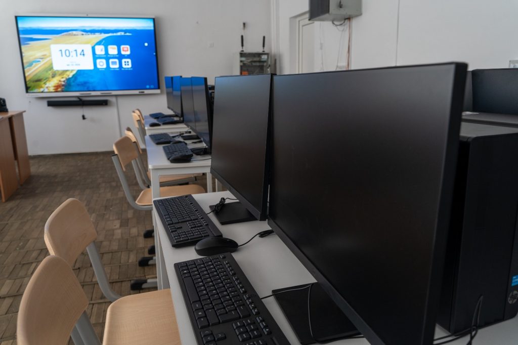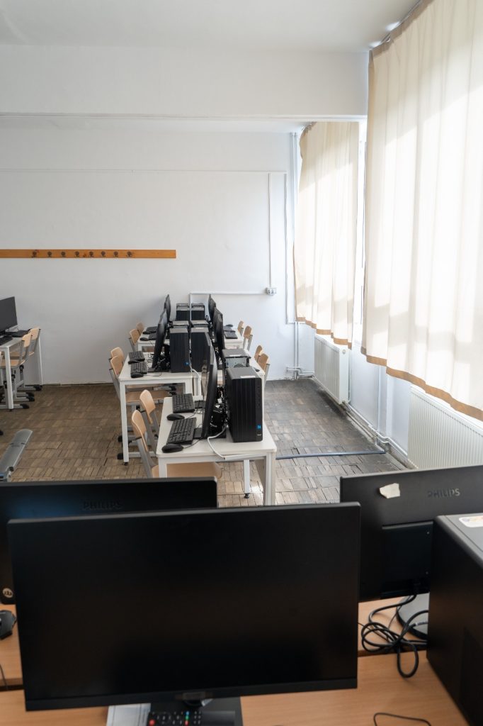 Laboratorul de informatică a fost echipat cu 1 tablă interactivă, 40 de sisteme all-in-one, 14 sisteme de sunet, 7 imprimante multifuncționale, 1 cameră pentru videoconferință și 13 scannere portabile.