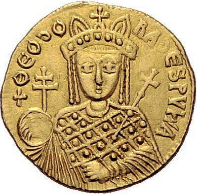 Sursa foto: https://ro.wikipedia.org/wiki/Teodora_a_II-a#/media/Fi%C8%99ier:Solidus_of_Theodora_II_(obverse).jpg