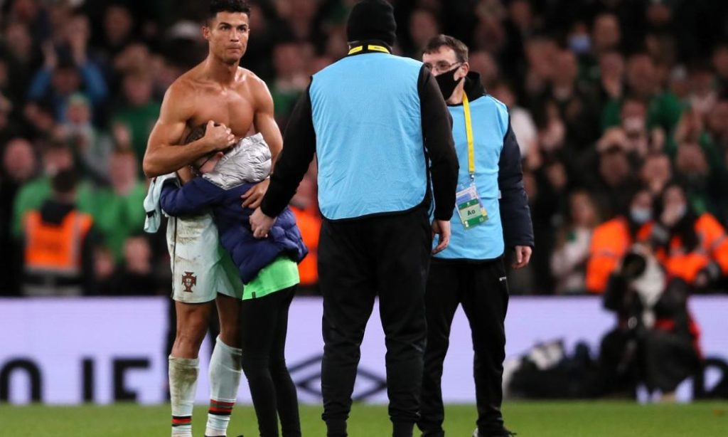 Ultimul exemplu a fost dat la finalul partidei dintre Irlanda și Portugalia, atunci când o fețită a intrat pe teren și cu lacrimi în ochi s-a dus la Ronaldo și l-a luat în brațe.