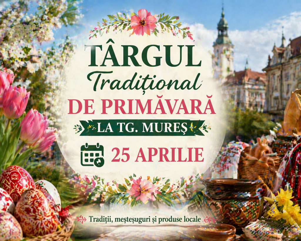Primăria Municipiului Târgu Mureș invită cetățenii la Târgul Tradițional de Primăvară, organizat în data de 25 aprilie 2026, în Piața Cuza Vodă; evenimentul este prima inițiativă de acest tip desfășurată în piețele agroalimentare din municipiu și are ca obiectiv susținerea producătorilor locali – persoane fizice și juridice – care contribuie la dezvoltarea economiei locale prin produse autentice și branduri proprii; târgul își propune să creeze o legătură directă între producători și consumatori, oferind vizitatorilor ocazia să descopere și să achiziționeze produse locale, într-un cadru organizat și accesibil.