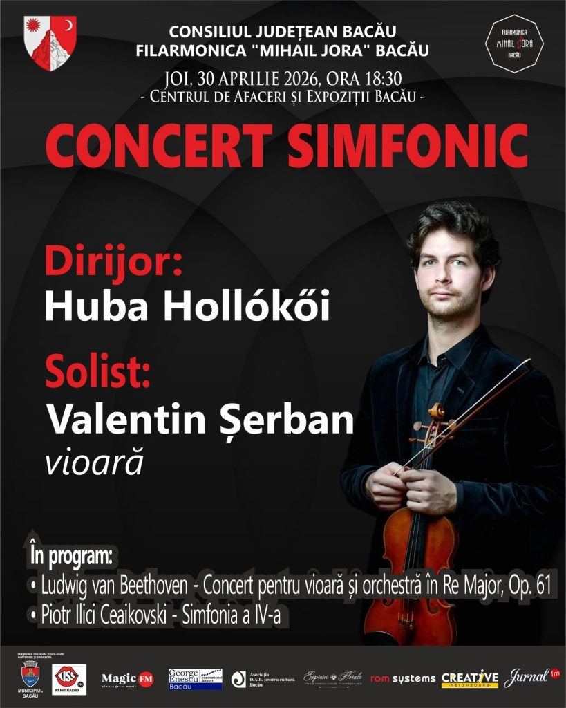 Violonistul Valentin Șerban, câștigător al Marelui Premiu al Concursului Internațional „George Enescu” – ediția 2020-2021, va susține un concert joi, 30 aprilie, la Centrul de Afaceri și Expoziții Bacău.