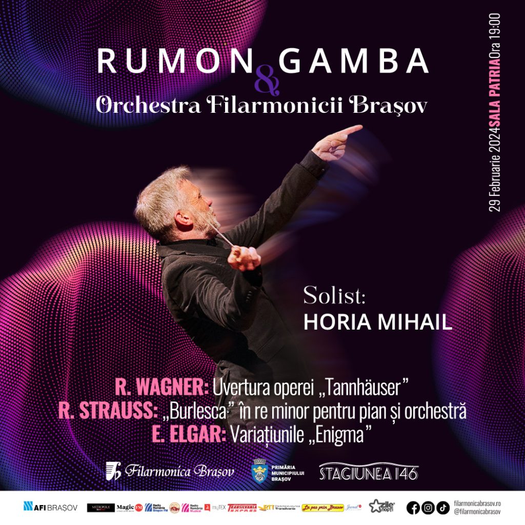Filarmonica Brașov invită melomanii la un concert simfonic fascinant pe 29 februarie, joi seară, sub bagheta distinsului dirijor Rumon Gamba și cu participarea virtuozului pianist Horia Mihail.