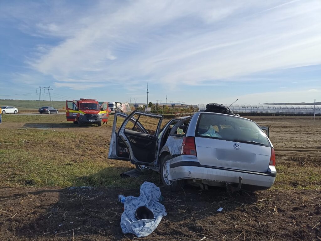 Suceava: Accident la Cumpărătura. O persoană a fost rănită după ce a ajuns cu maşina pe câmp (Foto)