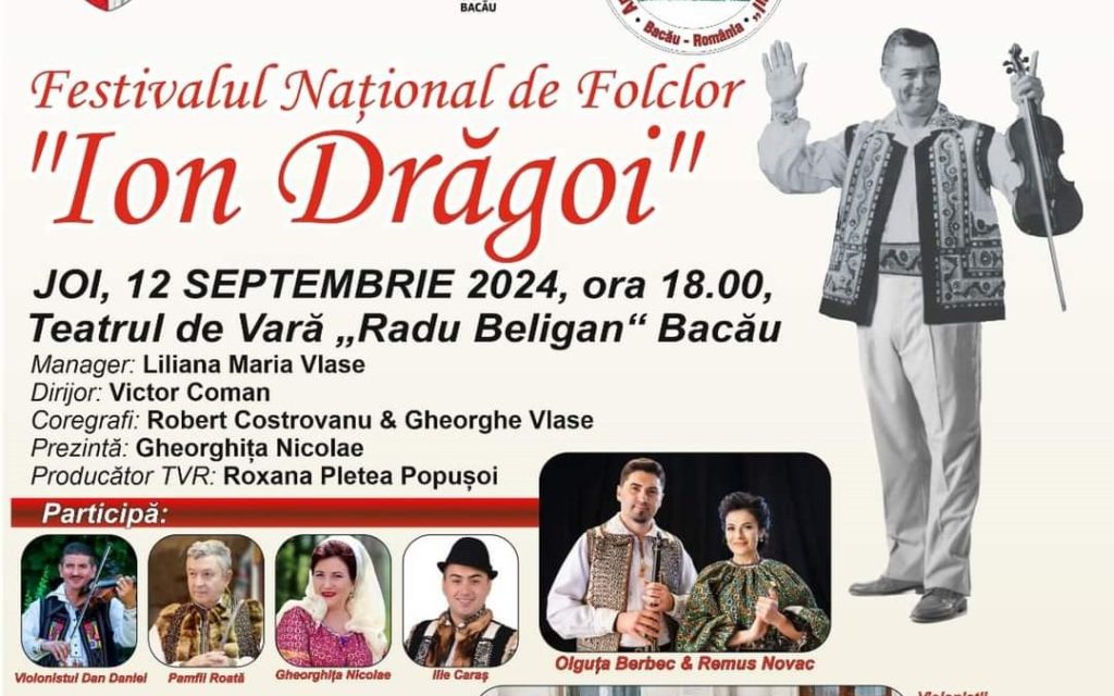 Băcăuanii sunt invitați joi, 12 septembrie 2024, de la ora18:00, la evenimentul cultural-artistic Festivalul Național de Folclor „Ion Drăgoi”, ce se va desfășura la Teatrul de vară „Radu Beligan” din Bacău. Manifestarea este organizată de Ansamblul Profesionist Folcloric „Busuiocul”, în colaborare cu Consiliul Județean Bacău și Teteviziunea Română, iar cei prezenți vor avea ocazia să […]