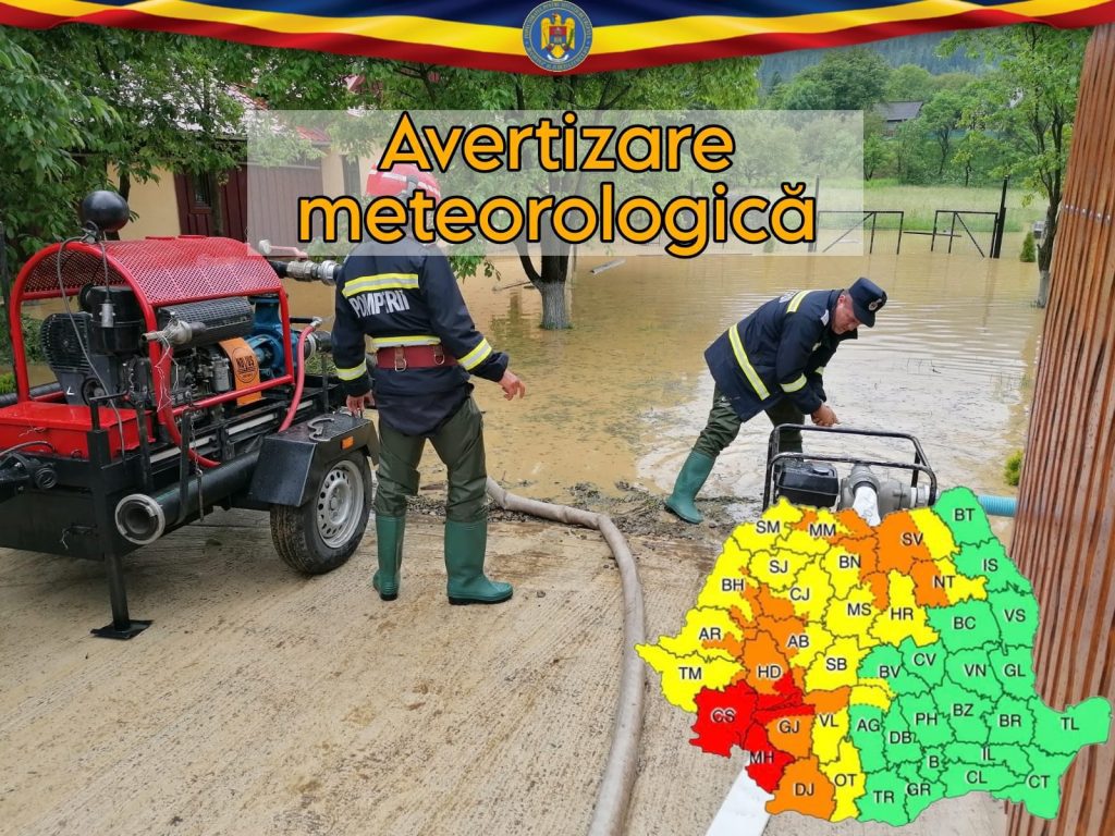 ISU „Bucovina” Suceava avertizează: Cod portocaliu, cu interval de valabilitate: 16 iunie, ora 10:00 – 17 iunie, ora 12:00. Fenomene vizate: instabilitate atmosferică accentuată, cantități însemnate de apă; Zone afectate: conform textului și hărții: În jumătatea de vest a Olteniei, sudul Banatului, zona Carpaților Occidentali, nordul Carpaților Orientali și vestul Carpaților Meridionali vor fi averse […]
