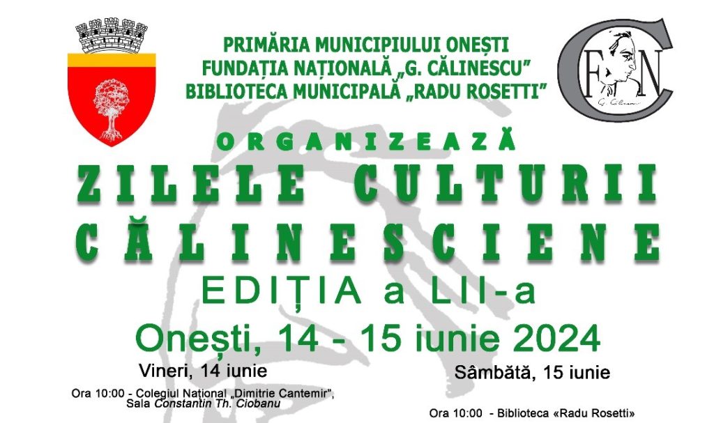 În perioada 14 și 15 iunie 2024, Primăria municipiului Onești, Fundația Națională „G. Călinescu” și Biblioteca Municipală „Radu Rosetti” organizează Zilele Culturii Călinesciene, ediția a LII-a. Prezenta ediție- spune Ionuț Tenie, directorul Bibliotecii Municipale „Radu Rosetti”- reia seria colocviilor anuale după o pauză impusă de pandemie și de alți factori obiectivi, cu speranța că va fi […]