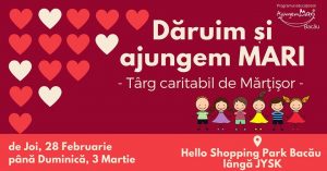Echipa de voluntari Ajungem MARI Bacău vă invită la târgul caritabil de mărțișor „Dăruim și Ajungem MARI”, pentru a susține educația copiilor din centrele de plasament din Bacău.
