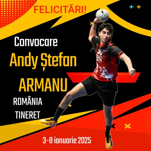 Andy Ștefan Armanu, handbalistul care joacă pentru CSM Vaslui, a fost convocat la lotul României de tineret pentru handbal masculin. Acesta face parte din grupul de 20 de jucători selectați de antrenorul Adrian Petrea pentru un stagiu de pregătire centralizat la București. Stagiul se va încheia pe 8 ianuarie, când echipa va pleca în Polonia pentru două jocuri de verificare, parte din pregătirile pentru Campionatul Mondial din iunie 2025, ce va avea loc tot în Polonia.